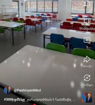 Ermənistan sosial şəbəkələrində baş nazir Nikol Paşinyanın bir neçə gün əvvəl açılışını etdiyi məktəbdəki stullar müzakirələrə səbəb olub. İddialara görə, stulların rəngləri “Azərbaycan bayrağını xatırladır”.