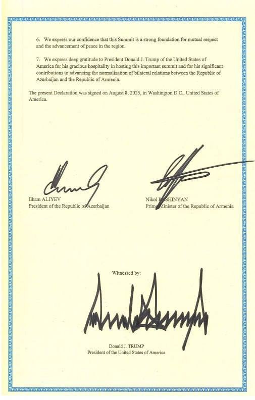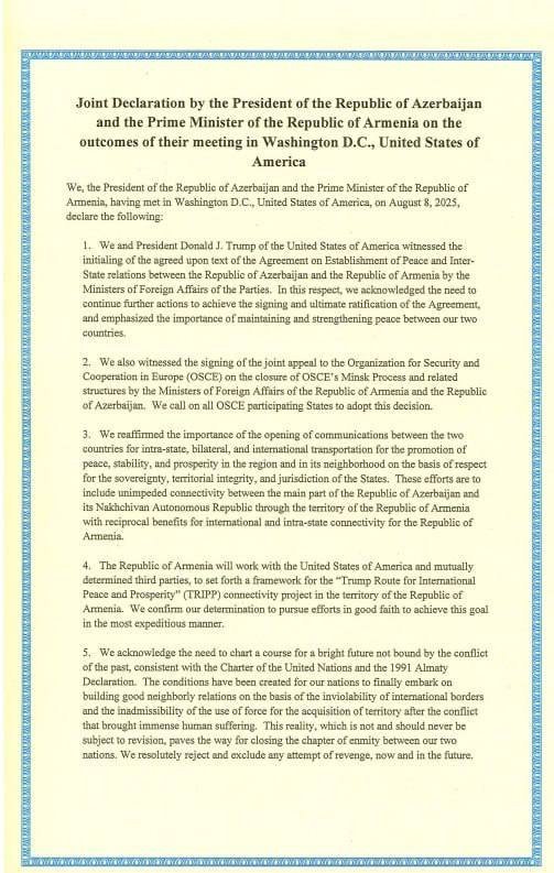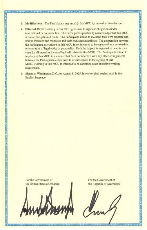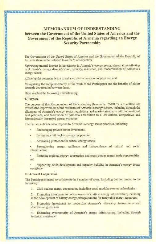 ABŞ Dövlət Departamenti Azərbaycan Prezidenti İlham Əliyev və Ermənistanın Baş naziri Nikol Paşinyanın Vaşinqtonda keçirilən görüşünə dair sənədləri açıqlayıb. gundemtv.az xəbər verir ki, ictimaiyyətə təqdim olunan sənədlərə liderlərin birgə bəyanatı, ABŞ və Azərbaycan arasında strateji tərəfdaşlıq haqqında Xartiyanın hazırlanması məqsədilə Strateji İşçi Qrupunun yaradılmasına dair Anlaşma Memorandumu, həmçinin ABŞ və Ermənistan arasında imzalanmış üç memorandum daxildir.