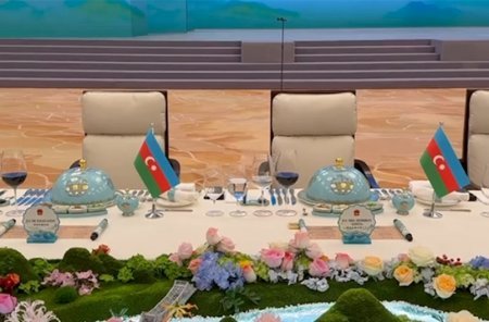 ziyafətə hazırlıq zamanı Prezident İlham Əliyev və birinci xanım Mehriban Əliyeva üçün ayrılan masanın görüntülərini əldə edib.